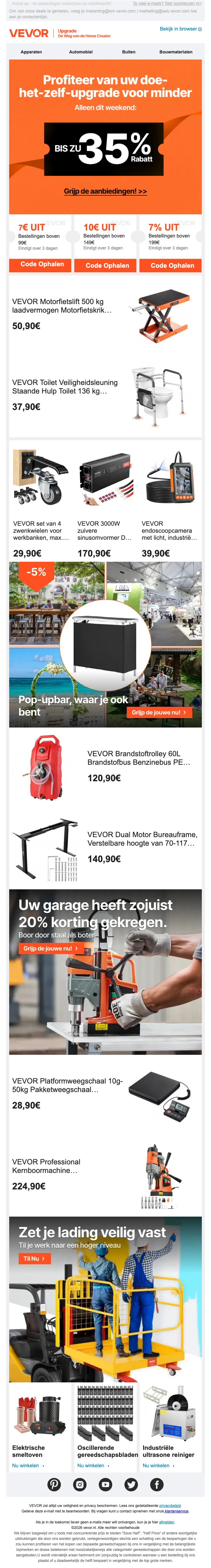 VEVOR welkomstkorting van €5 op je eerste bestelling