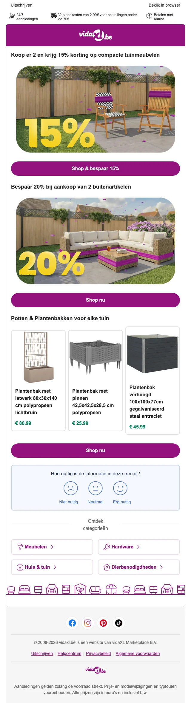 | AANBIEDINGEN02 | VidaXL kortingscode belgie: 10% korting op alle deals |