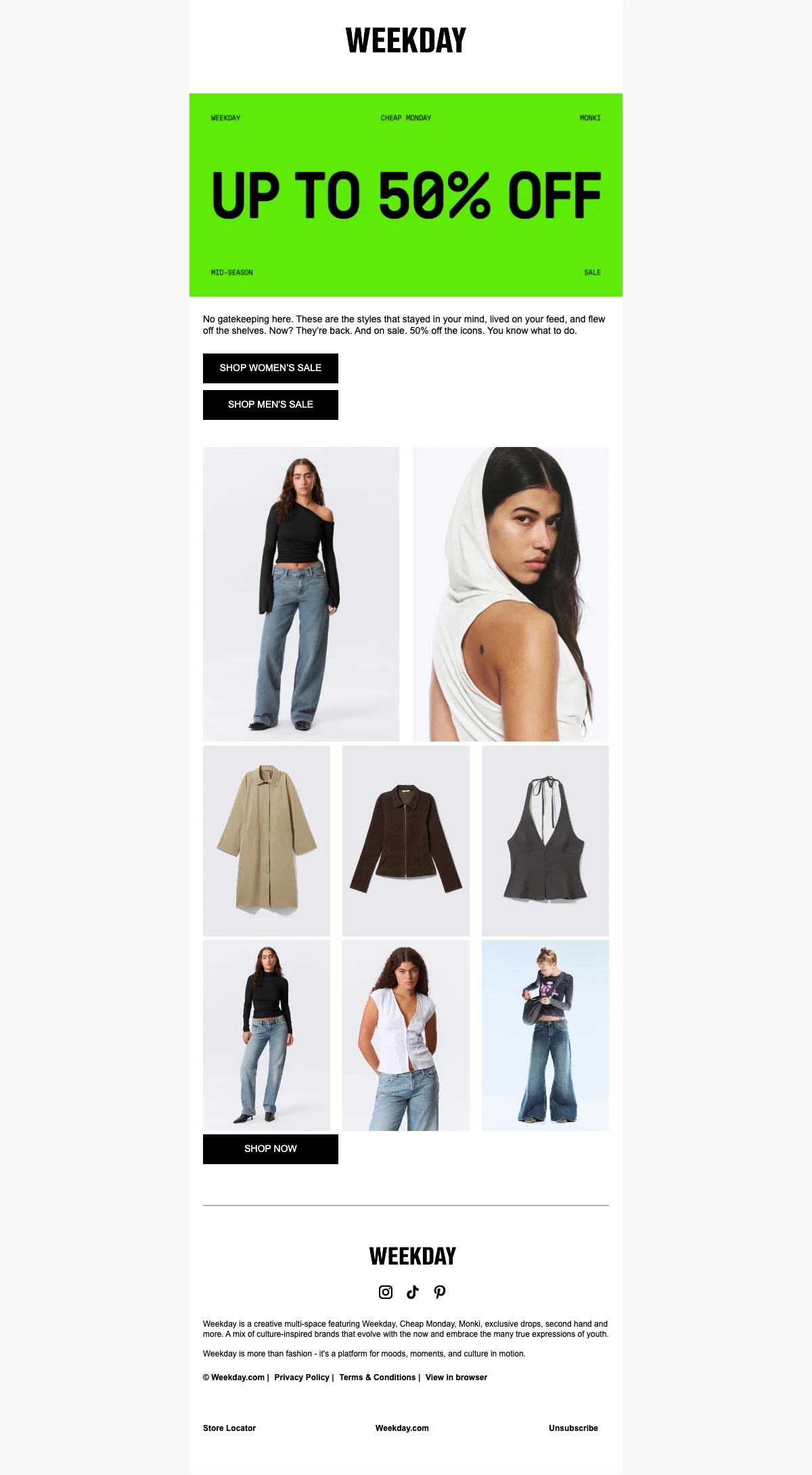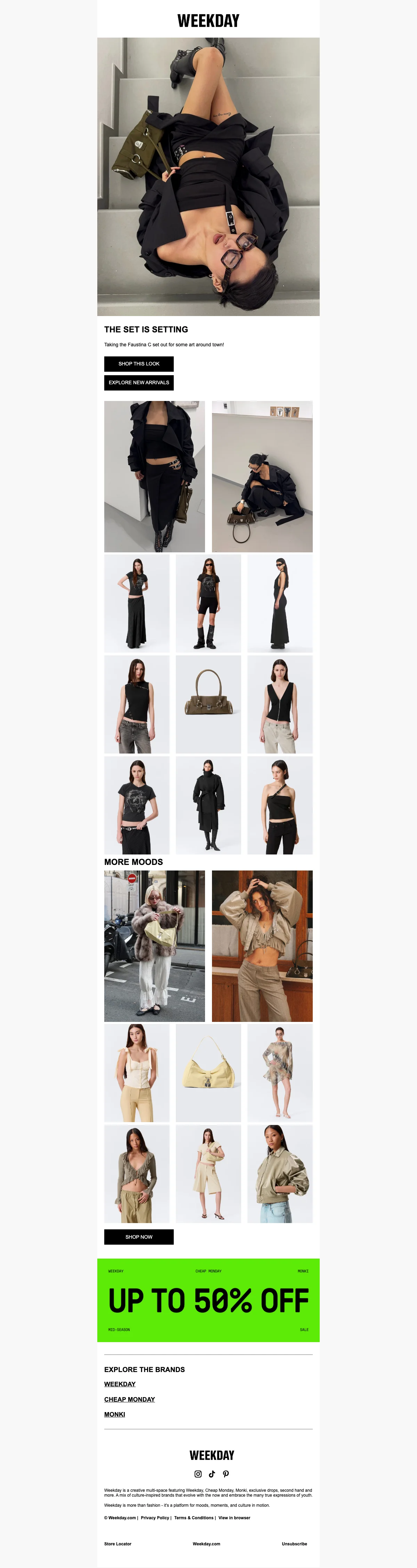 Weekday biedt een zorgvuldig samengestelde mix van dames- en herenmode, geïnspireerd door jongerencultuur en straatstijl, waarmee elke outfit een statement wordt.