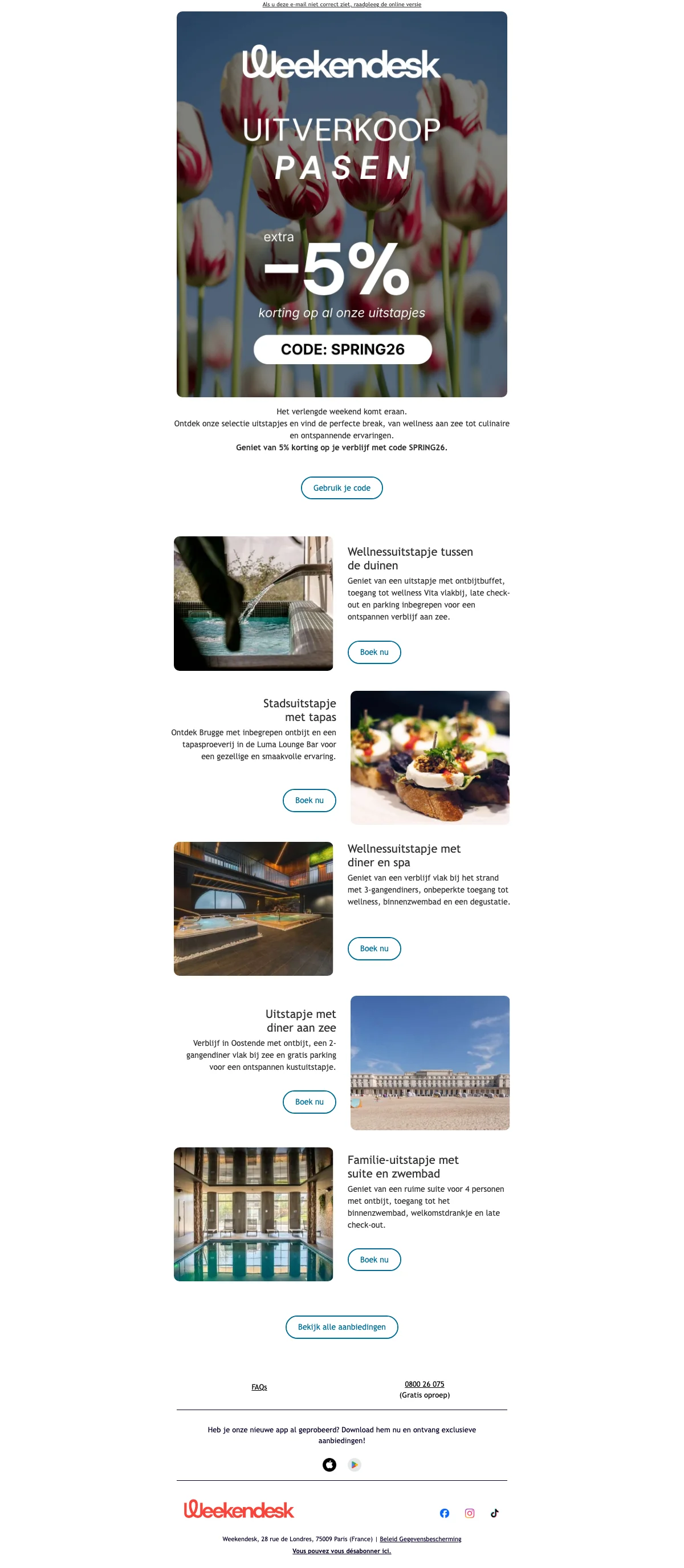 | Spa weekend | Overnachting + ontbijt + spa | €60 |