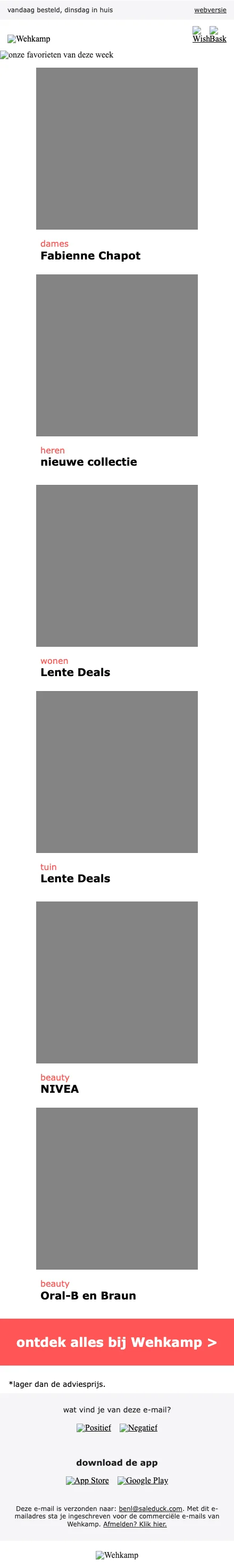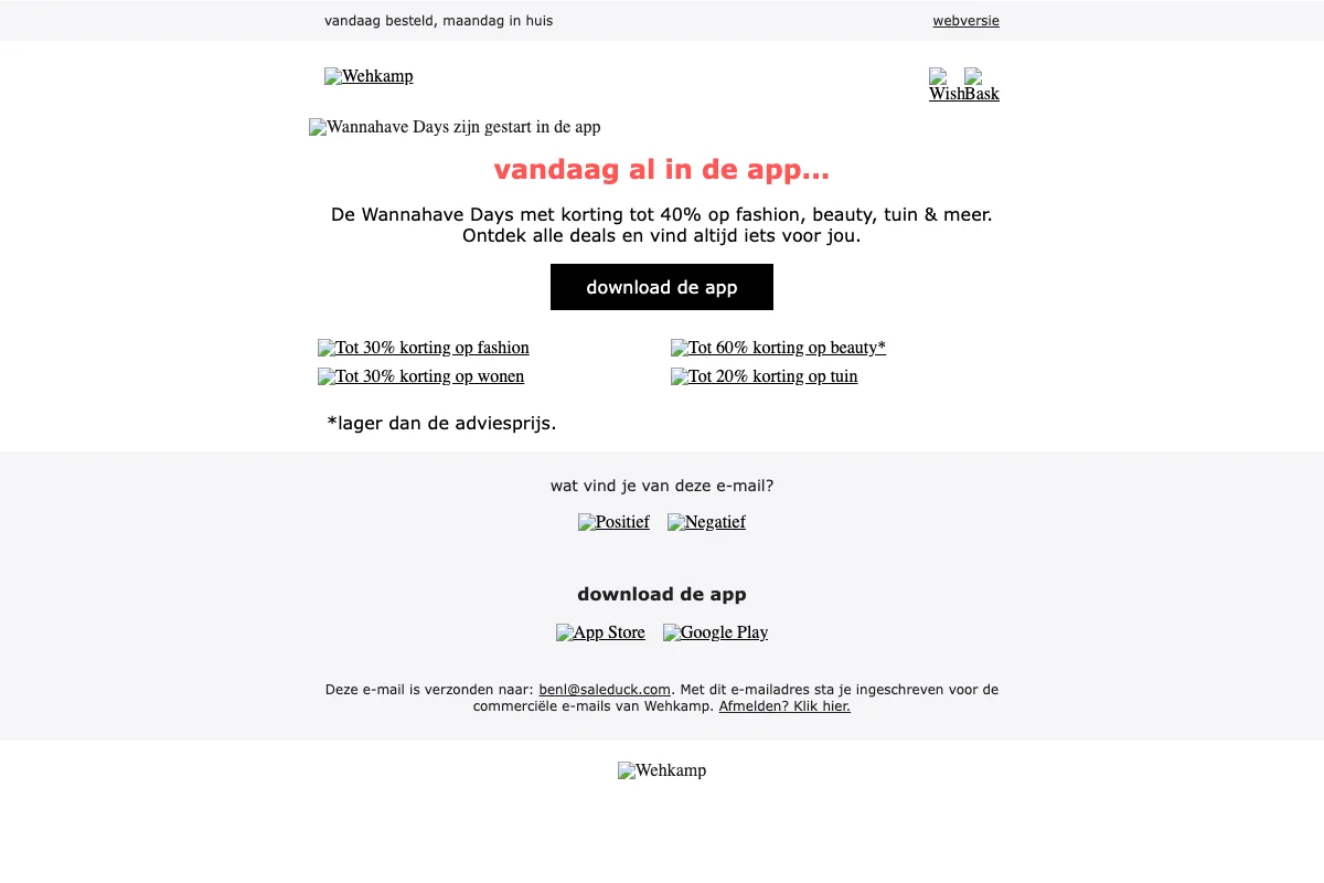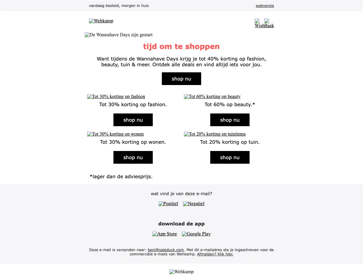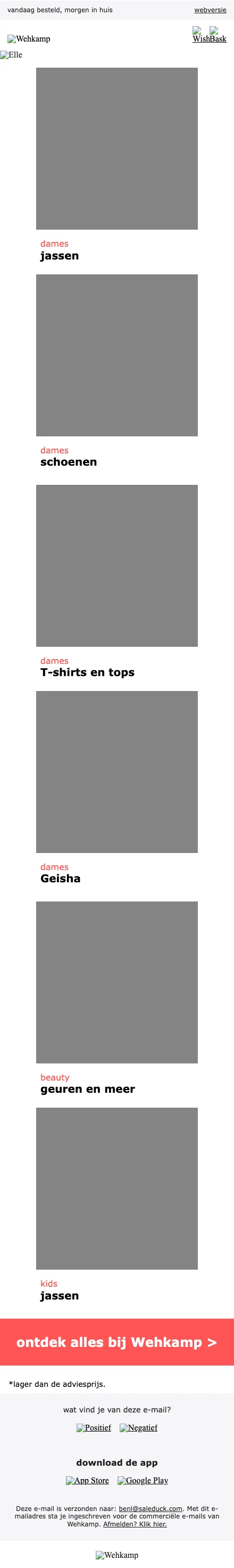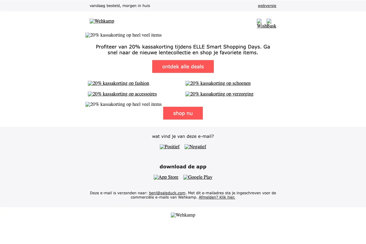 Shop nu tijdens de Sale van Wehkamp. Je korting kan oplopen tot wel 70% op heel veel fashion. Ontdek het uitgebreide assortiment van Wehkamp en profiteer van de lage prijzen van de Sale.