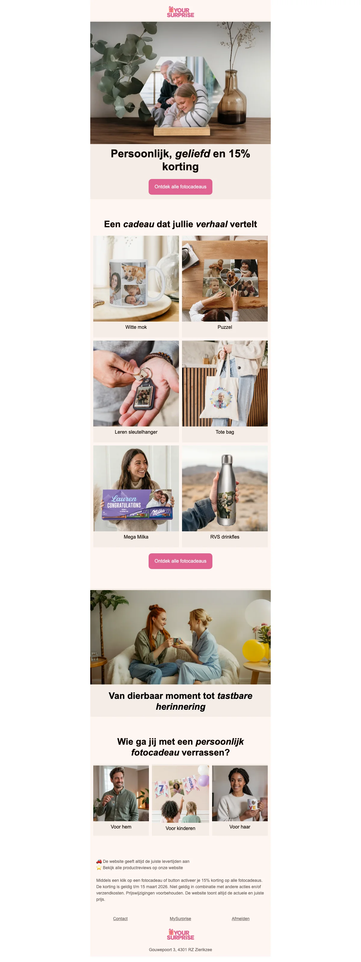 MySurprise fotocadeaus 15% korting op alle persoonlijke cadeaus